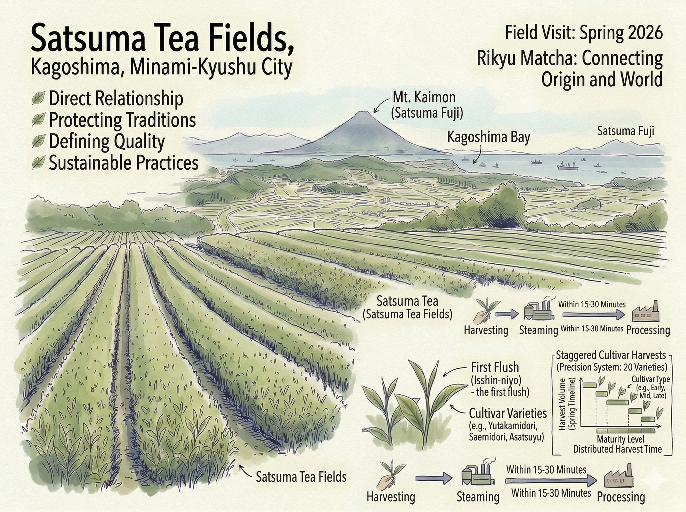 Written by Mizuki Yasuda, CEO of Rikyu Matcha Field visit: Satsuma, Minami-Kyushu City, Kagoshima, Japan — Spring 2026